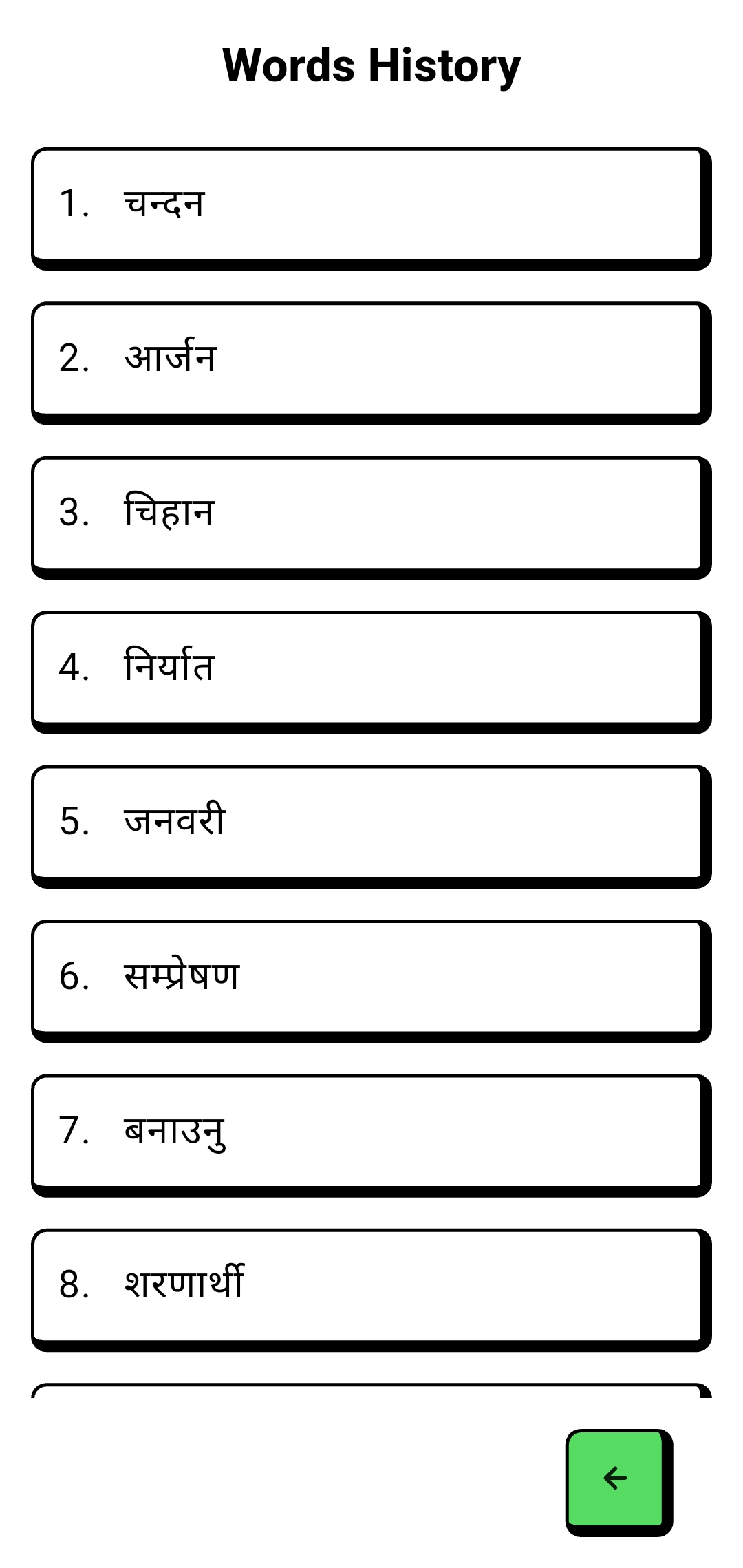Sabda is a vocabulary-building app focused on helping users learn and retain Nepali words more effectively. The app is designed with simplicity and consistency in mind, and features:
