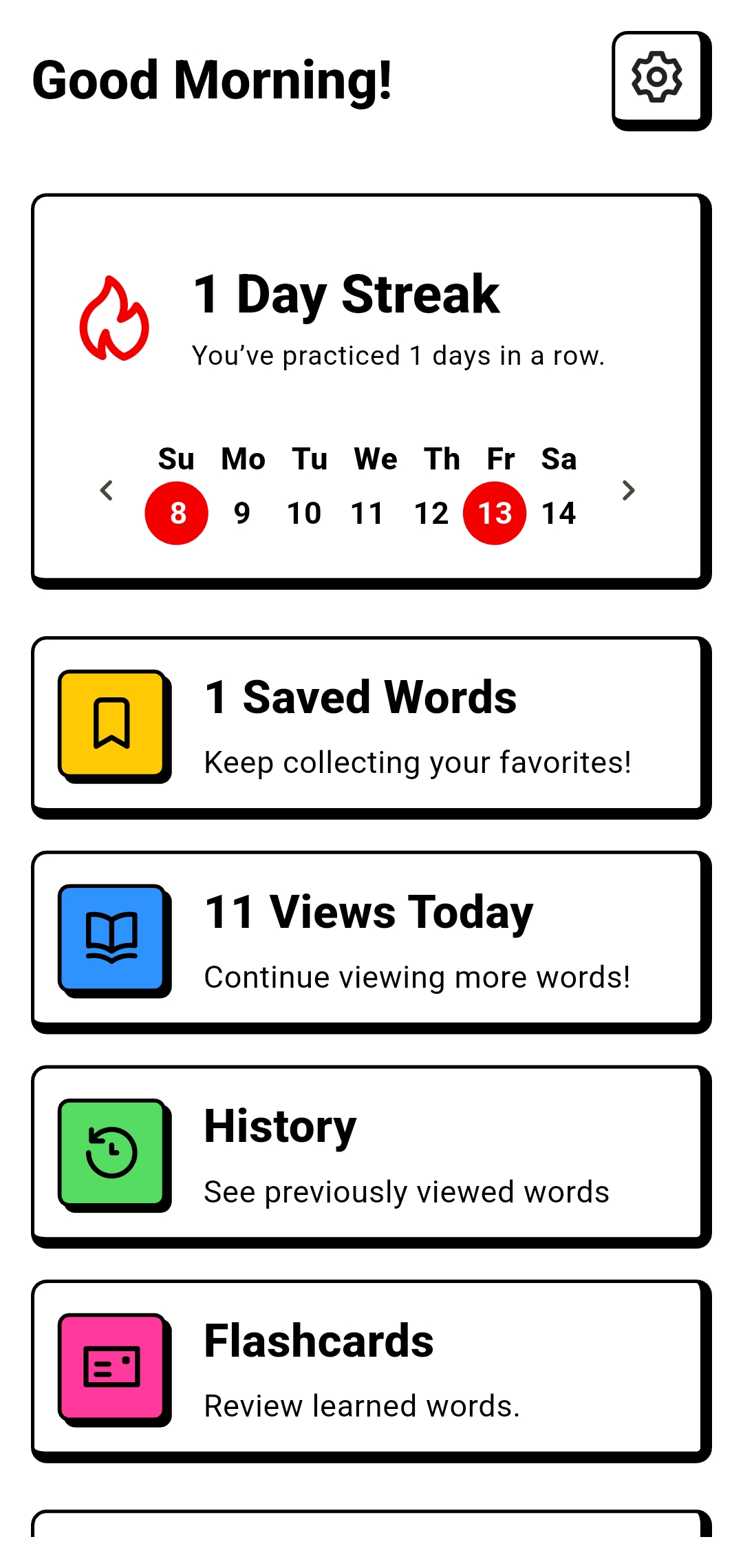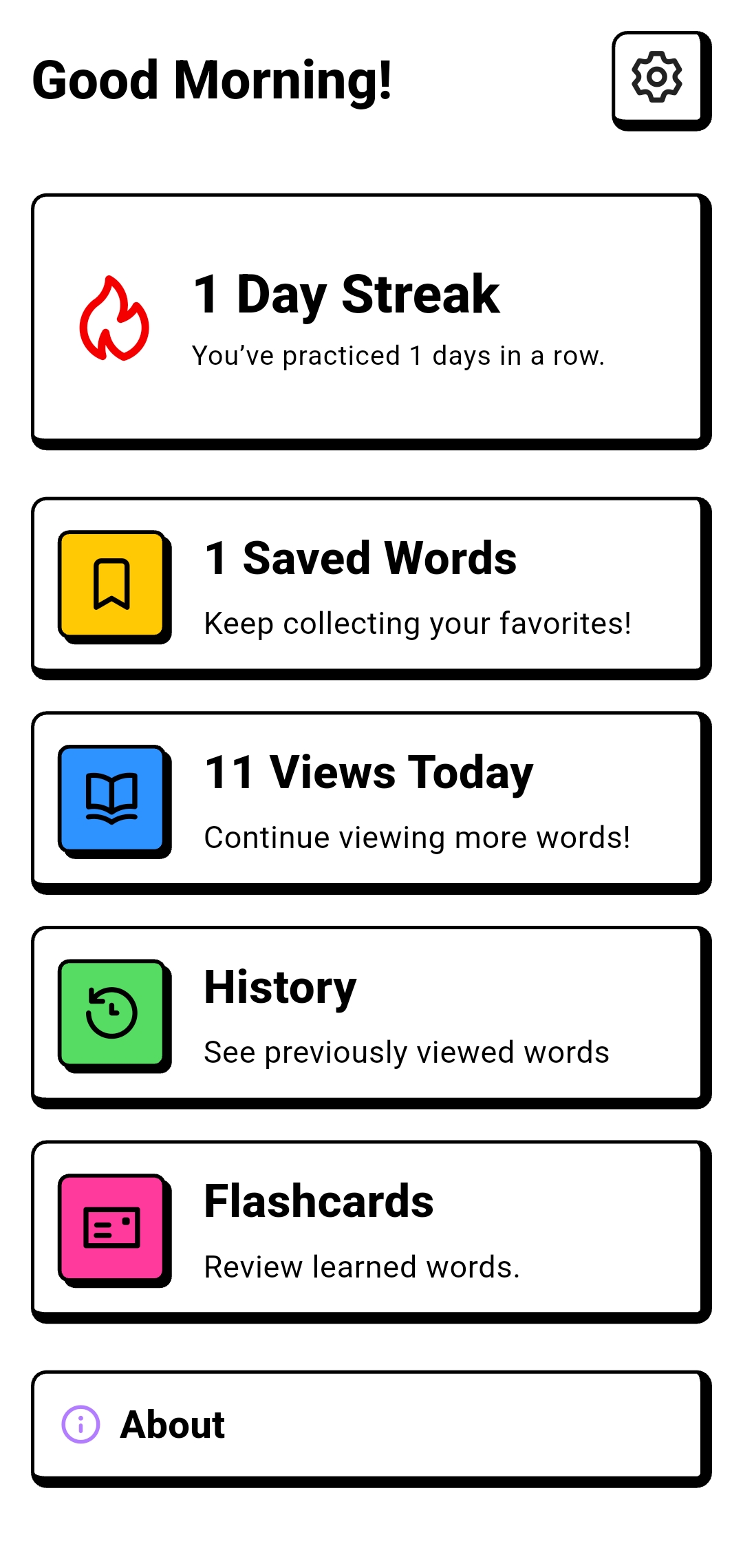 - Learn new words every day with scheduled notifications